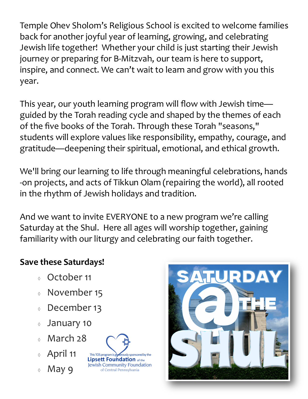 Introducing – Saturday at the Shul!