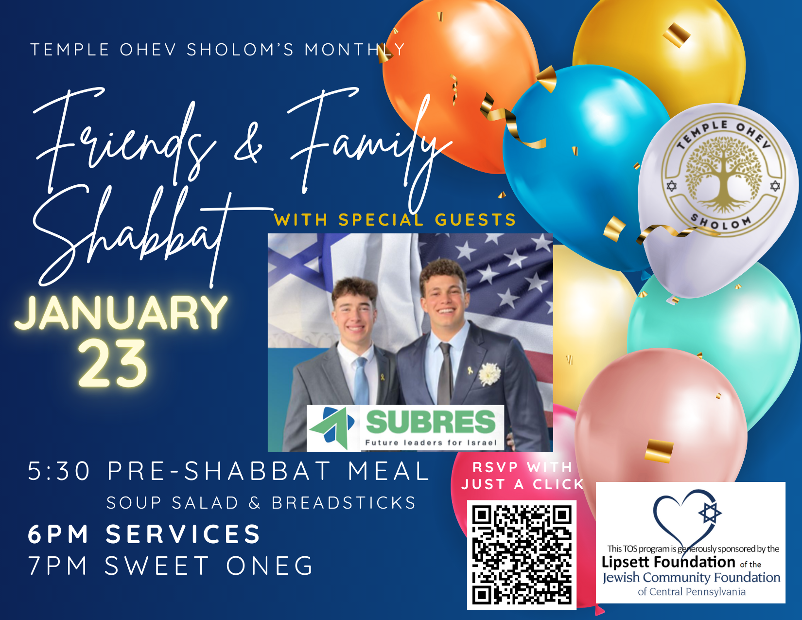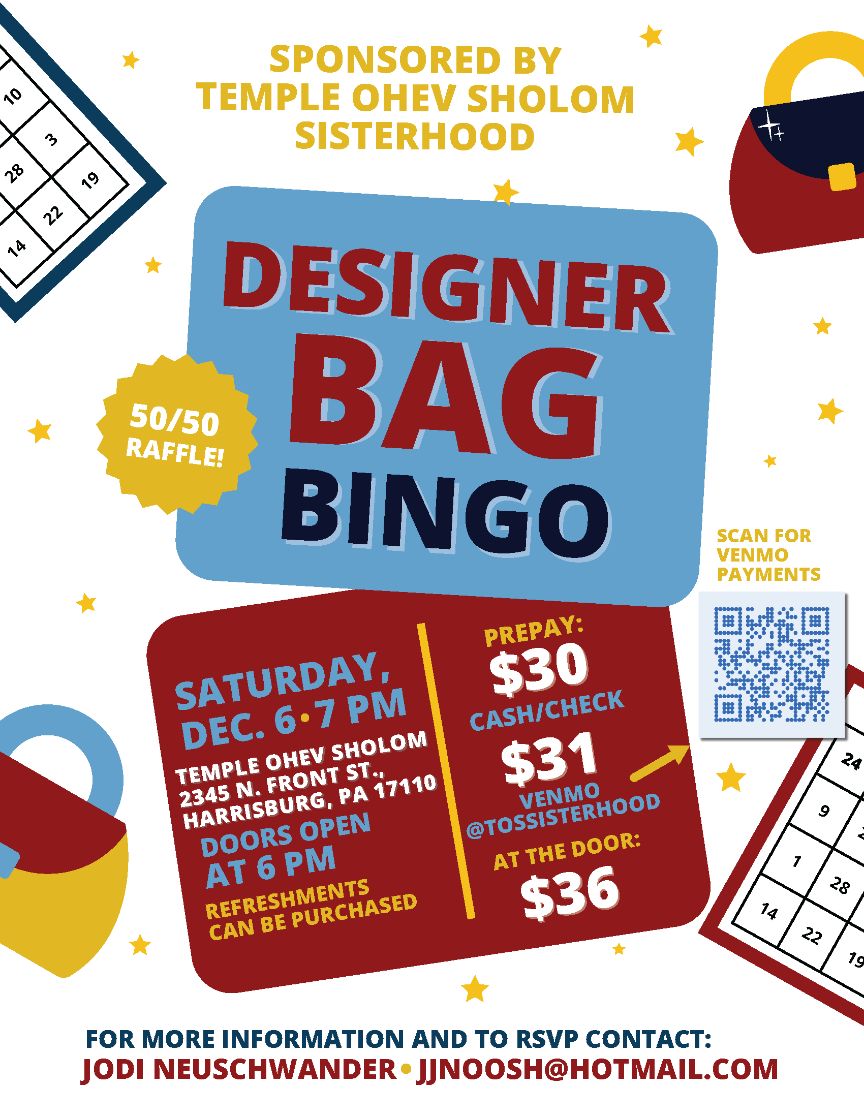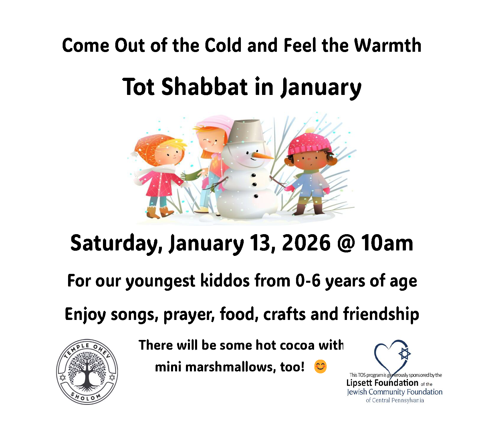 Friday evening Shabbat services are live-streamed and recorded on our YouTube channel at www.youtube.com/TempleOhevSholomHbgPa.